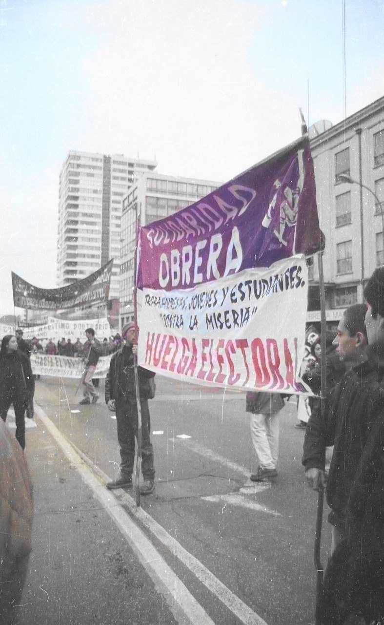 Solidaridad obrera nace como grupo para solidarizar con los conflictos sindicales o de trabajadores, como fue el caso de la Huelga de Unimarc y Doggis en el año 94. La idea surge de un grupo de compañeros anarquistas que funcionaban en el TASYS (Taller de Análisis Sindical y Social) y, ante la poca solidaridad de otros gremios con los conflictos sindicales. Con el tiempo, y tras debates, se busca transformar a Solidaridad Obrera en un grupo de agitación anarcosindicalista e ir en la línea de formar anarcosindicatos a largo plazo, lo que en el año 96 se logra cuando se comienza a hacer propaganda por las ideas. Es así que, a mediados de mayo, se inicia la Huelga de los Mineros de Lota, del Pique Carlos Cousiño. La cual surge en solidaridad por el despido de trabajadores de la Mina, este tipo de huelgas no son legales bajo el código del trabajo, por tanto, era una huelga ilegal. Esta huelga, se mantuvo gracias al apoyo transversal de miles de personas que desde distintos lugares del país apoyaban con alimentos y dinero para mantener en pie la lucha.
